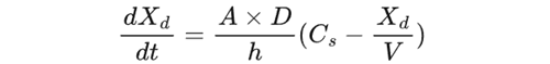其中 A 為固體藥物的表面積,D 為藥物的擴散系數(shù),h 為與溶解表面相鄰的有效擴散邊界層的厚度,Cs 為藥物的飽和溶解度,V 為可用的水量,Xd 為溶解的藥物量。