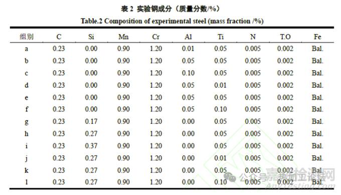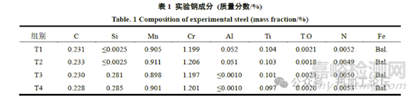 基于此,本研究采用熱模擬實(shí)驗(yàn)和熱力學(xué)計(jì)算相結(jié)合的方法,設(shè)計(jì)了Al-Ti和Si-Ti兩種脫氧體系,對(duì)不同體系下的鈦微合金鋼中含Ti夾雜物的生成行為進(jìn)行表征分析,總結(jié)出不同脫氧順序?qū)︿撝泻琓i夾雜物生成的影響,以揭示其生成機(jī)理。