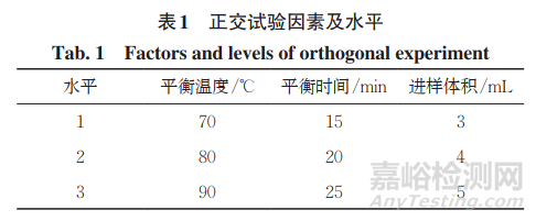 2.1 基于正交試驗的頂空條件的優(yōu)化