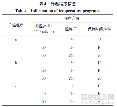 為了能更好地分離1227樣品中的各組分,試驗采用了程序升溫法,升溫程序如表4所示。