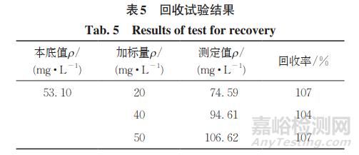 在上述1227樣品中分別添加不同質(zhì)量濃度的氯化芐標(biāo)準(zhǔn)溶液,各添加水平平行測定3次,計算回收率,結(jié)果見表5。
