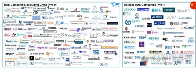 由于手術(shù)機(jī)器人臨床效果優(yōu)異且市場龐大,因此吸引大量醫(yī)療器械公司加入到這個充滿生機(jī)賽道。根據(jù)海外研究分析全球有超過188家各種類型手術(shù)機(jī)器人公司,其中中國有超過57家,位居全球No.1。