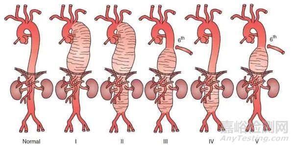 根據(jù)Crawford分型,TAAA可以分為以下五種類型:
