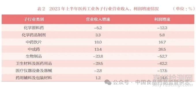 1.2 醫(yī)藥主要細(xì)分行業(yè)運行情況