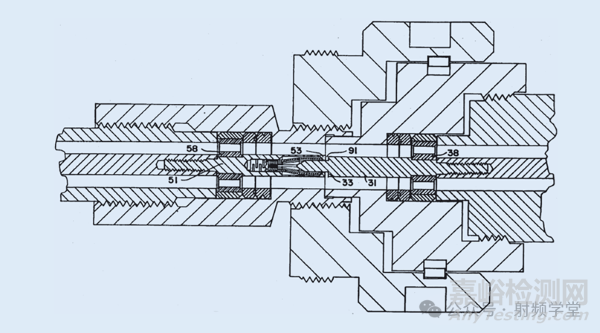 與此同時(shí)惠普公司的射頻工程師 Julius Botka設(shè)計(jì)了2.4mm連接器,直接將連接器的工作頻率推高到了50GHz,并且申請了專利,下圖介紹了2.4mm連接器的結(jié)構(gòu)圖。