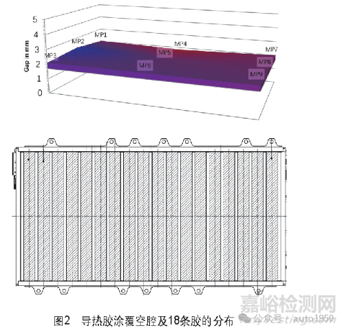 (1)導(dǎo)熱膠覆蓋率 本文研究對象為10模組電池,每個(gè)模組和電池盒之間存在間隙(理論間隙為2.075mm,見圖1),