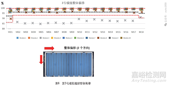 通過試驗(yàn)數(shù)據(jù),發(fā)現(xiàn)3號模組出現(xiàn)整體偏移的情況(見圖6),