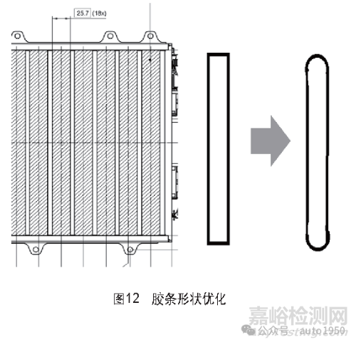 本項(xiàng)目提出建議給德國研發(fā)部門,膠條的形狀應(yīng)進(jìn)行優(yōu)化(見圖12所示圓角)。