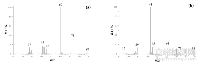 酸羰基的 γ 位有氫原子時易發(fā)生麥?zhǔn)现嘏牛?m/z 60 的碎片離子。