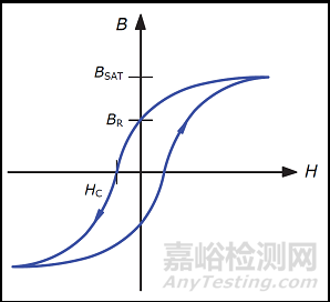 一般高頻電感所用的鐵氧體鐵芯是含有鎳鋅(NiZn)或錳鋅(MnZn)之鐵氧體化合物,屬于矯頑磁力(coercivity)低的軟磁類鐵磁材料。圖1為一般磁鐵芯之磁滯曲線(B-H loop),磁性材料的矯頑磁力HC亦稱為保磁力,系指當(dāng)磁性材料已磁化到磁飽和后,使其磁化強(qiáng)度(magnetization)減為零時(shí)所需的磁場(chǎng)強(qiáng)度。矯頑力較低代表抵抗退磁能力較低,也意味著磁滯損失較小。