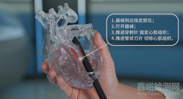 “旋切刀”通過心尖進(jìn)入指定部位,在超聲精準(zhǔn)定位下打開“旋切刀”操作:推出穿刺針固定心肌組織,接著推進(jìn)管狀刀片切除心肌組織,之后將其從心臟中帶出來。
