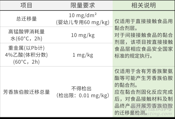 此外,標(biāo)準(zhǔn)針對(duì)食品接觸材料及制品用黏合劑的生產(chǎn)及包裝設(shè)計(jì)過(guò)程、基礎(chǔ)原料、添加劑、標(biāo)簽標(biāo)識(shí)等方面也作出了具體的規(guī)定。