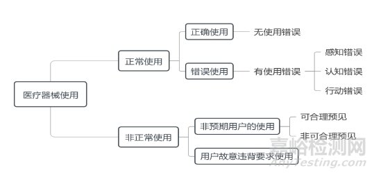 正常使用是指用戶按照說明書要求及常識慣例操作醫(yī)療器械,反之即為非正常使用。正常使用從使用結(jié)果角度可分為正確使用和錯(cuò)誤使用,正確使用是指沒有錯(cuò)誤使用的正常使用,錯(cuò)誤使用是指用戶行動(dòng)或行動(dòng)缺失導(dǎo)致異于注冊申請人或用戶所預(yù)期的醫(yī)療器械響應(yīng)。