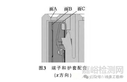 實踐中由于考慮到端子和護套的設計間隙,除考慮端子彈舌的剪切面積(材料厚度和彈舌寬度)外,應保證極限惡劣情況下,端子彈舌與設計在護套上的掛臺結構具有完整的配合。