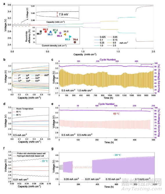 ▲Li-H電池綜合電化學(xué)性能展示。a倍率性能;b-c長循環(huán)穩(wěn)定性;d-e高溫性能;f-g低溫性能。