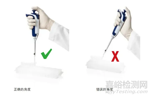 吸液時吸頭盡可能以90度角浸入到樣品中,最好不要偏離垂直位置超過20°對于微量體積的移液器,以垂直角度移取溶液可以提高2.5%的準確性。