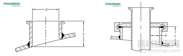 在設(shè)計時,應(yīng)考慮減少噴淋的陰影區(qū)域,例如采用無菌法蘭口、喇叭口,以及更小的管口高徑比和更寬的內(nèi)伸件環(huán)形空間等設(shè)計,如圖1所示[3]。