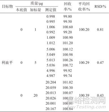 2.3.2 加標(biāo)回收和精密度試驗(yàn)