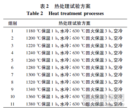 截取Q235B鑄坯試樣,進行熱處理試驗。試驗溫度的設(shè)定:根據(jù)Q235B 鋼的一般加熱溫度1200~1320℃和本熱處理爐最高溫度限制1380℃,共進行11組不同溫度熱處理試驗,每組溫度取6個試樣( 其中3個制備拉伸試樣、3個制備金相試樣) ,具體熱處理試驗方案見表2。