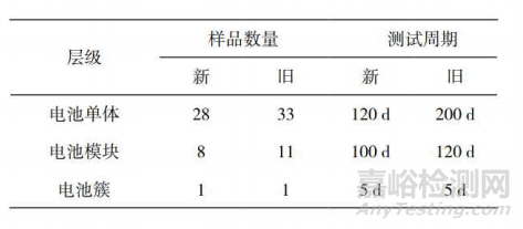 表1 樣品數(shù)量和測(cè)試周期