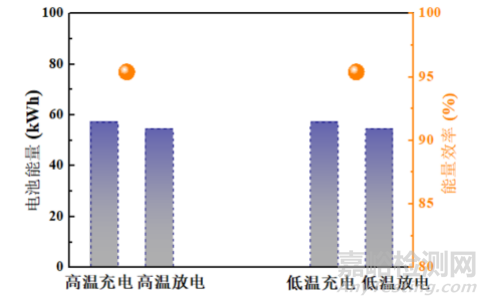 新標(biāo)準(zhǔn)對(duì)電池高低溫適應(yīng)性測(cè)試變更是為了確保電力儲(chǔ)能用鋰離子電池在極端溫度條件下的性能和安全性。如圖4所示,該模塊在高溫靜置后能量效率為95.4%,大于新標(biāo)準(zhǔn)要求的94%,而在低溫靜置后能量效率為95.4%,大于標(biāo)準(zhǔn)要求的94%,該模塊表現(xiàn)出優(yōu)異的高低溫穩(wěn)定性。