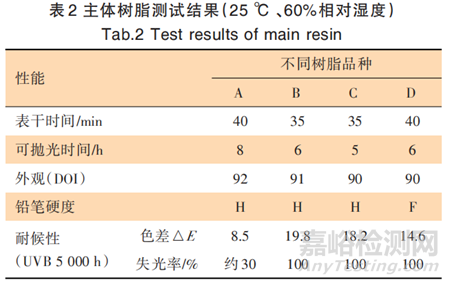 2.1 主體樹脂對漆膜性能的影響