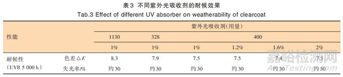 2.2 紫外線吸收劑對耐候性能的影響