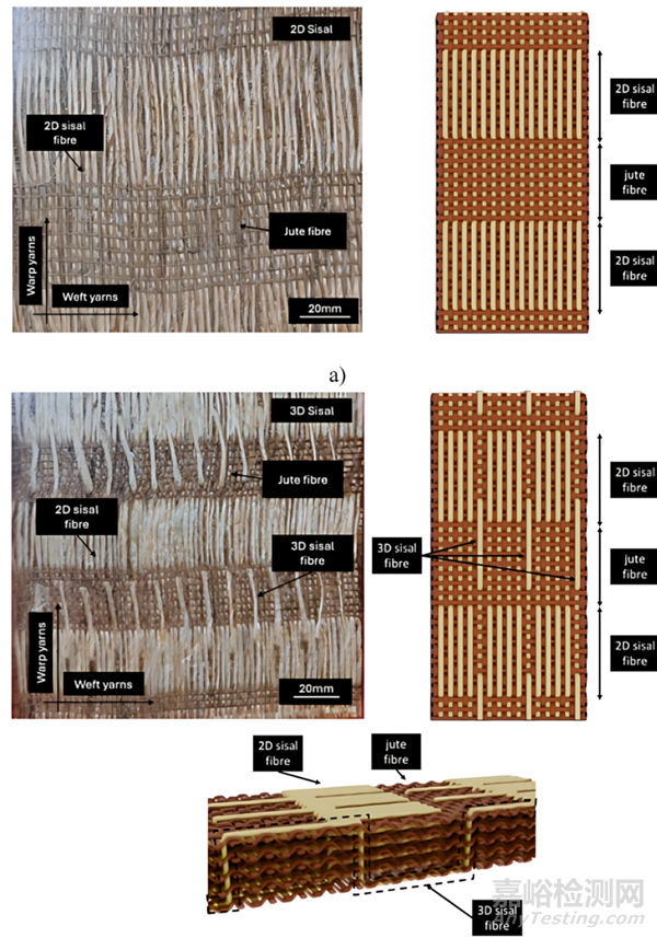 該研究采用黃麻雙向織物作為主要增強(qiáng)材料,并輔以劍麻(sisal)、curauá和玻璃纖維作為次要增強(qiáng)材料。此外,還使用了環(huán)氧樹(shù)脂作為基體材料,并詳細(xì)列出了其力學(xué)性能參數(shù)。