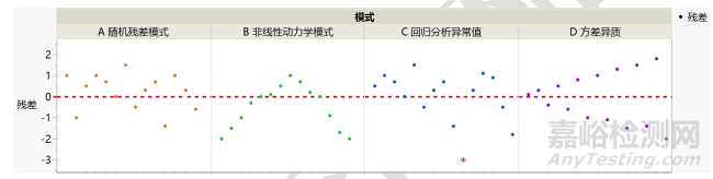 上圖中,包含殘差的四種模式,每種模式表示的誤差來源不同。筆者分析如下: