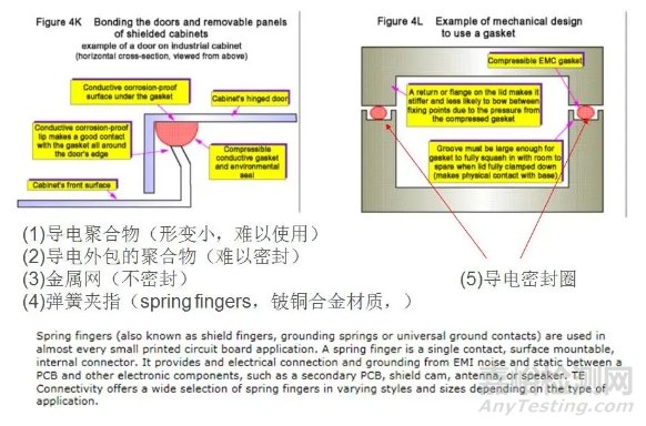 要達(dá)到40dB的SE,通常需要用導(dǎo)體墊圈、彈簧夾指來(lái)進(jìn)行密封,注意內(nèi)部元件與屏蔽罩的間距、數(shù)據(jù)總線(xiàn)與開(kāi)孔和縫隙之間的距離。