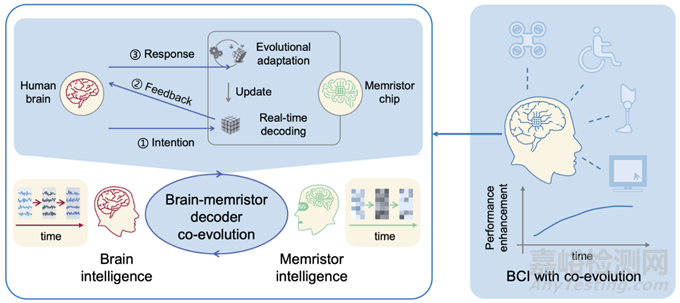 機(jī)學(xué)習(xí)環(huán)路:該環(huán)路利用憶阻器神經(jīng)形態(tài)器件構(gòu)建的解碼器,能夠?qū)崟r(shí)適應(yīng)大腦電信號(hào)的波動(dòng),并動(dòng)態(tài)更新解碼參數(shù)。這種設(shè)計(jì)使得機(jī)器能夠更好地理解和響應(yīng)大腦信號(hào)。