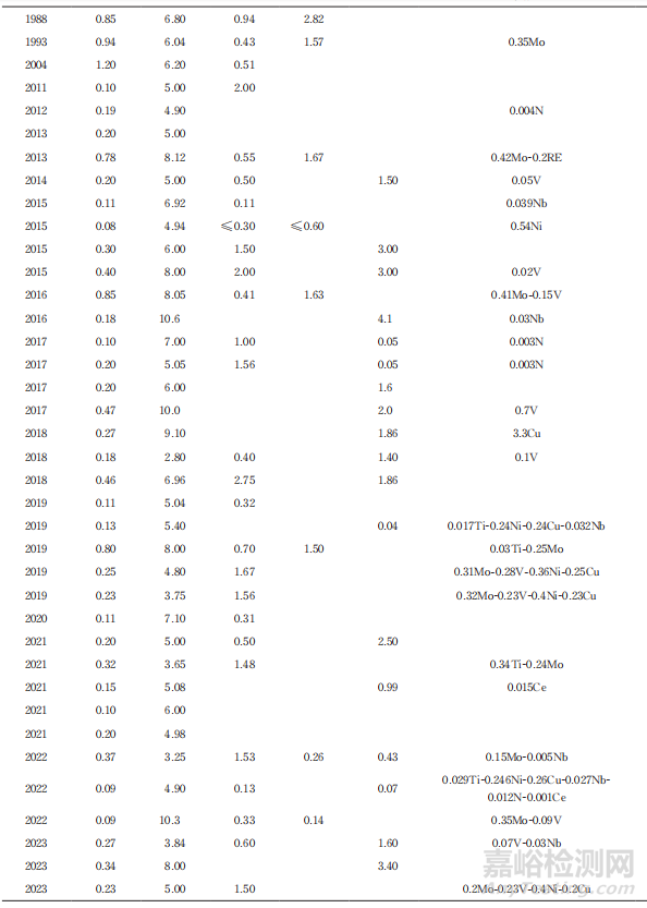 表1 典型中錳鋼的化學(xué)成分變化
