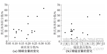 圖 1 典型中錳鋼的殘余奧氏體含量隨碳和錳含量的變化