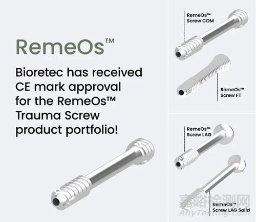 2025年2月,Bioretec宣布其RemeOs創(chuàng)傷螺釘產(chǎn)品組合獲得CE認(rèn)證,正式獲準(zhǔn)在歐盟及認(rèn)可CE認(rèn)證的非歐盟國(guó)家市場(chǎng)銷(xiāo)售。這標(biāo)志著B(niǎo)ioretec在可吸收骨科植入物領(lǐng)域又邁出了重要一步。