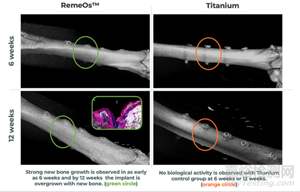 RemeOs™ 植入物具有顯著的骨促進(jìn)特性。研究表明,90%的患者在使用 RemeOs™ 植入物后,6周內(nèi)實(shí)現(xiàn)了完全骨化,12周內(nèi)所有患者均實(shí)現(xiàn)了骨折完全愈合。這種骨促進(jìn)效果歸功于植入物表面形成的鈣磷酸鹽(如羥基磷灰石)層,這些層能夠與骨組織產(chǎn)生有益的生物活性反應(yīng)。