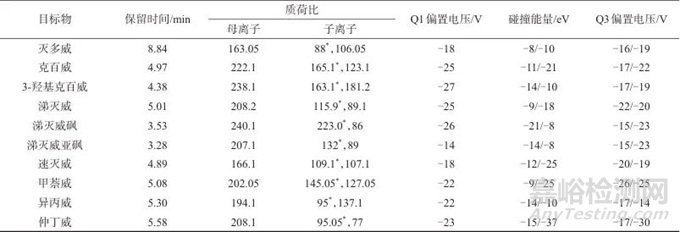 Tab. 2 Mass spectrum parameters of 10 pesticide residues