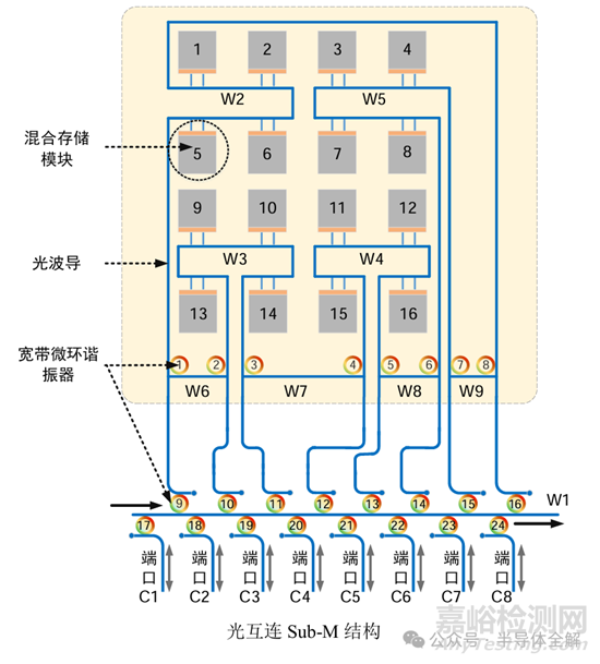 在研究中設(shè)計(jì)片上光互連網(wǎng)絡(luò)時(shí),可在同一個片上光互連結(jié)構(gòu)中同時(shí)使用寬帶微環(huán)諧振器和窄帶微環(huán)諧振器。
