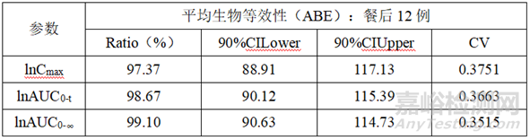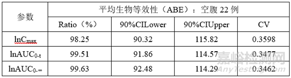 正式BE試驗結(jié)果判斷:自制制劑和參比制劑具有生物等效性。