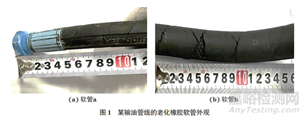 橡膠軟管失效最嚴重且頻繁的位置為外覆層或內襯層的橡膠材料,所以對橡膠軟管進行老化評估本質上就是對各種橡膠進行分析,如NBR、EPDM、HNBR(氫化丁腈橡膠)、CR等。橡膠軟管老化往往由最初的硬化、開裂開始,直至后期的大面積開裂,即龜裂,進而演化成嚴重的爆裂,造成介質泄漏、系統(tǒng)失效等惡劣情況。此外,橡膠軟管的增強層起到承壓作用,一旦腐蝕、疲勞等因素造成材料的力學性能下降,也會導致橡膠軟管承壓受限,發(fā)生斷裂甚至爆裂,后果不堪設想。因此,增強層的老化評估也應納入整體考量,以全面防范軟管失效。