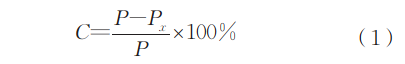 同樣地,在高溫高壓環(huán)境下,軟管的硬度也可能會增加,并導致拉伸性能下降,這些變化直接影響軟管的使用壽命和安全性。但是簡單的抗拉強度、斷后伸長率等指標并不能準確地描述橡膠軟管的老化程度,因此引入老化率的概念。老化率是橡膠材料的性能隨時間變化而發(fā)生下降的比例,它通過比較橡膠的初始性能P與橡膠在老化過程中x時刻的性能Px,計算出性能下降的百分比C,計算公式如 式(1)所示。