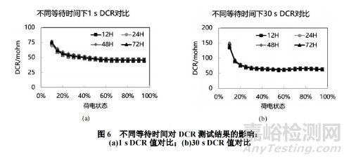 3.3 預(yù)處理或壽命測(cè)試過(guò)程中靜置等待時(shí)間對(duì) DCR 測(cè)試結(jié)果一致性的影響