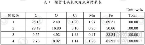 參照JIS G 4053-2016,擺臂球頭材料符合SCM435成分標準。具體成分結(jié)果見表2。