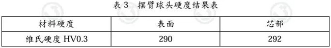 擺臂球頭表面和芯部硬度無明顯差異。測試結(jié)果見表3。