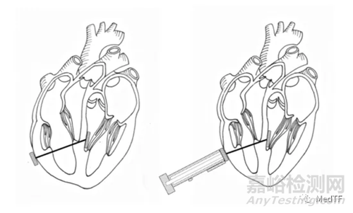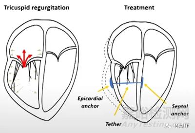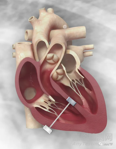 APPROXIMA的植入物帶由兩個錨和一個可調(diào)節(jié)繩組成,兩個錨被放置在右心室的相對兩側(cè),并通過可調(diào)節(jié)繩連接。術(shù)者可以通過可調(diào)節(jié)繩使擴張的右心室恢復(fù)到正常。