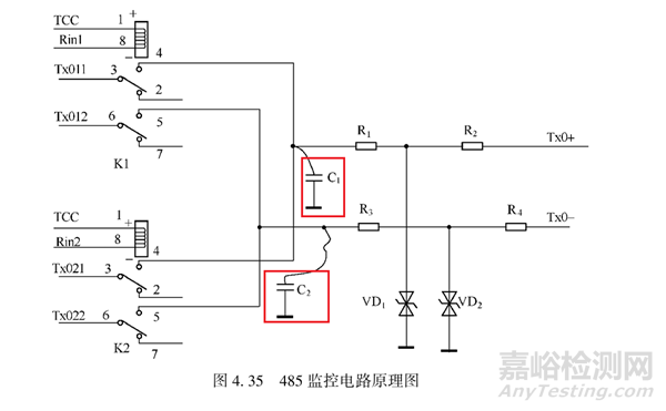 在電路圖中,485監(jiān)控電路分TX和RX 兩部分, 監(jiān)控信息上報(bào)的是TX部分?如下圖所示為監(jiān)控部分的電路圖: