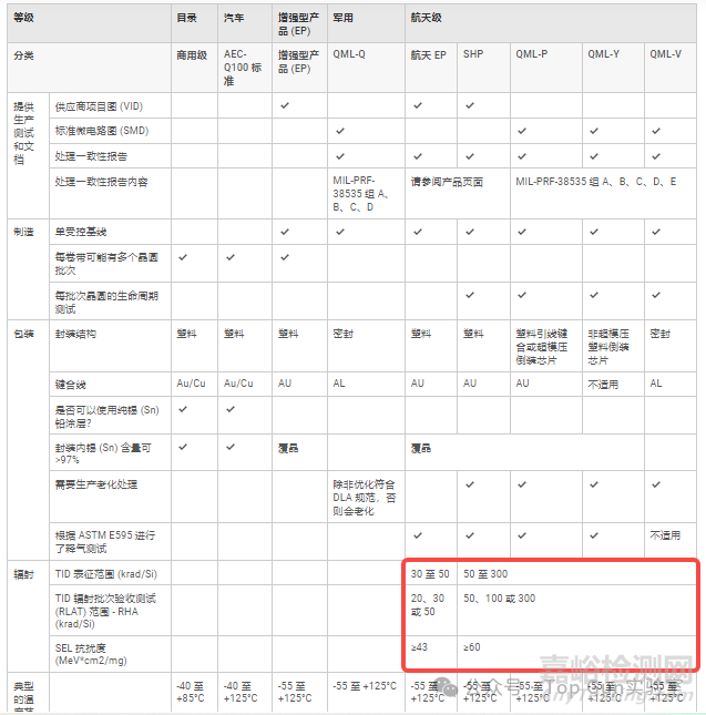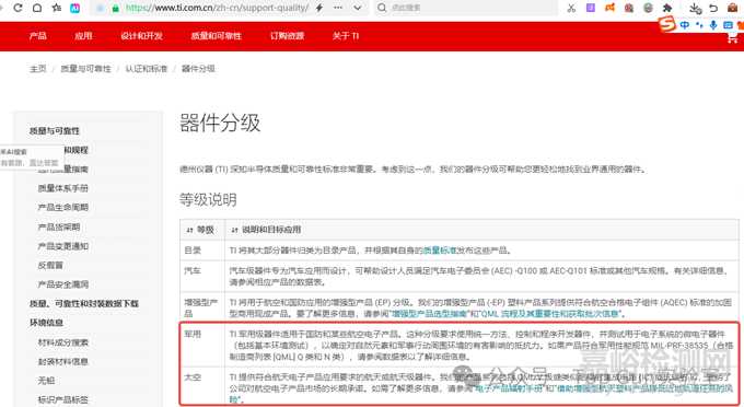 以德州儀器為例,其在官網(wǎng)對器件進(jìn)行了細(xì)致的分級