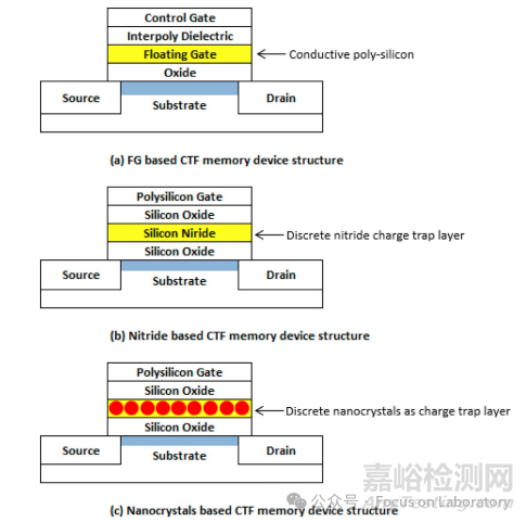 相比之下,氮化物基CTF和納米晶體基CTF的電荷捕獲介質(zhì)是硅氮化物層和納米晶體層中的離散電荷捕獲節(jié)點(diǎn)。由于注入的電荷被離散地捕獲在這些節(jié)點(diǎn)中,單點(diǎn)缺陷引起的電荷泄漏對(duì)整體電荷捕獲介質(zhì)的影響被顯著緩解。因此,氮化物基CTF和納米晶體基CTF在SILC方面具有更高的可靠性。