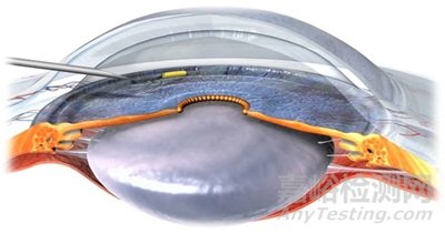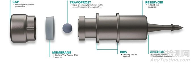使用27G或26G針頭注射,植入虹膜角膜角。研究人員評估了該裝置的療效和留存率,研究結(jié)果顯示 10 天后留存率為 100%,眼壓降低 5.4 至 7.5 毫米汞柱,具體降幅取決于一天中的時間。然而,到第 30 天,留存率降至 42%,眼壓降低幅度降至 14%。該產(chǎn)品尚未獲得 FDA 的安全或有效性認證。