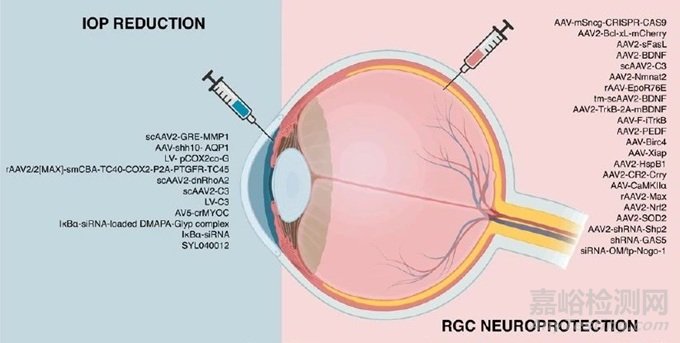 基因治療已成為全身及眼部各種疾病治療的主要焦點「3」。(一個典型的例子是 Spark Therapeutics 公司的 Luxturna,首個獲得 FDA 批準的眼部基因治療藥物,于 2019 年獲批用于治療 2 型萊伯先天性黑蒙癥。)正在進行的基因治療研究有望揭示青光眼及其進展的潛在機制。由于青光眼并非由單一基因突變引起,目前的基因治療研究不僅旨在降低眼壓,還致力于識別與青光眼發(fā)展相關(guān)的基因。