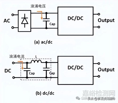 浪涌電流是電路打開吸收的最大電流,出現(xiàn)在輸入波形的幾個周期內(nèi)。